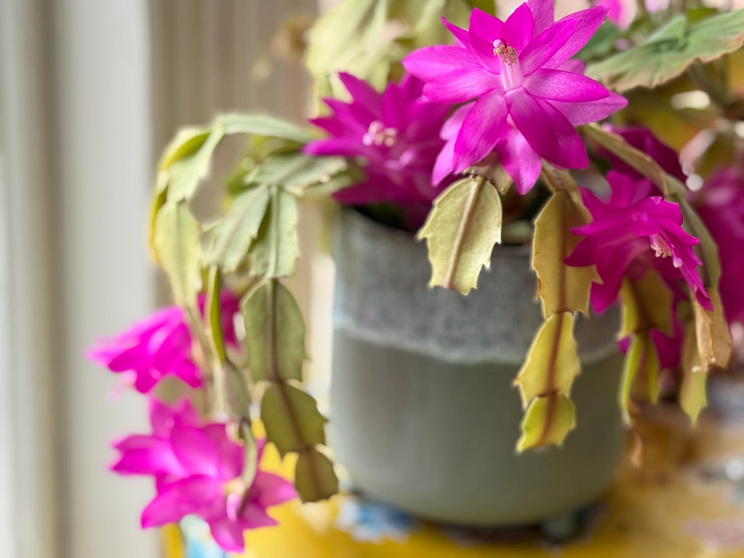 She's had a difficult year, repotting didn't sit well and I thought she might die. But, thankfully today there are 1 or 2 small fuchsia colored buds which give me hope for an almost Christmas bloom. Here's to long life, traditions and hope for the future. 🩷🩷🩷