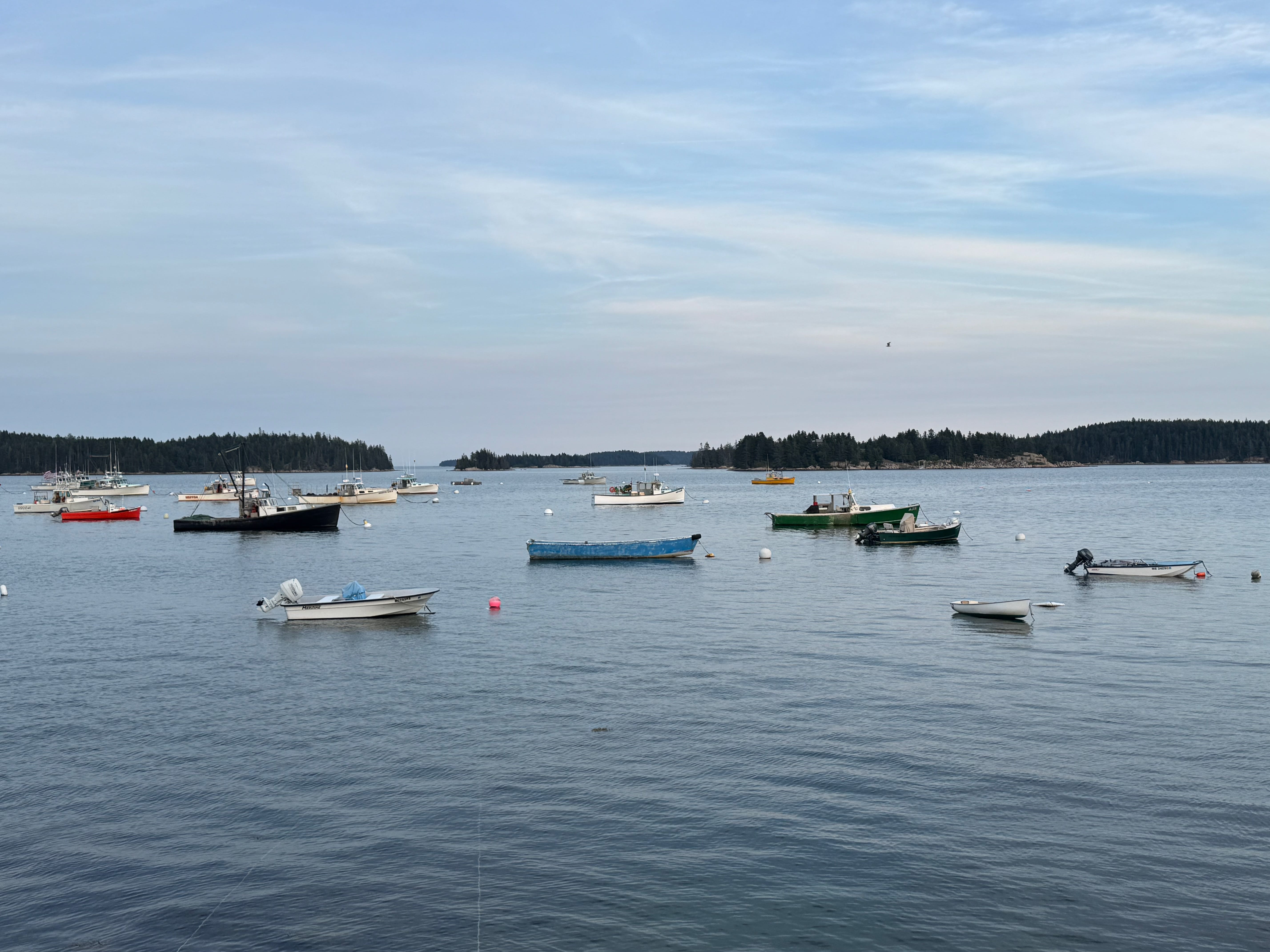 It’s Monday. I’ve taken us over the singing bridge, across the winding causeway, and all the way to the tip of Deer Isle, to the town of Stonington. When we were here in May, the town wa…